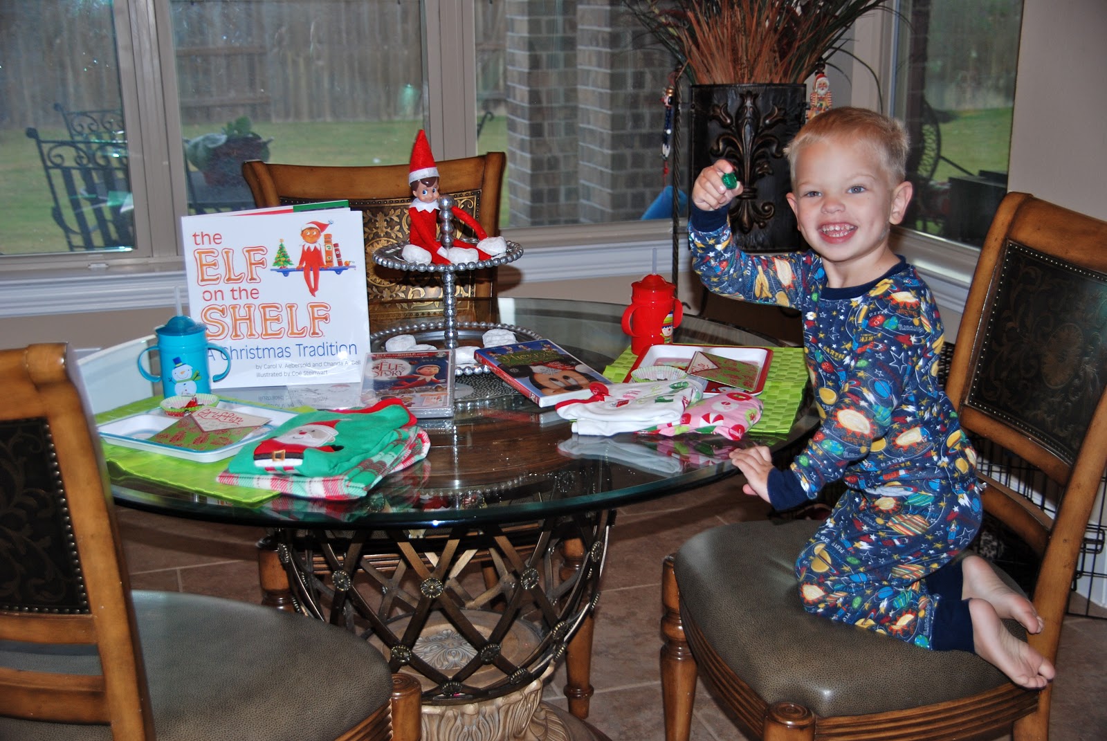We continued our tradition of a North Pole breakfast to announce the arrival of their Elf on the Shelf.  Last year Griff was a little young and Ella was just a baby so they didn't really "get" it.  But this year, they both LOVED their special breakfast.  Griffin woke up first and got to enjoy the surprise while waiting for sissy to get up.  Last year Griffin chose the name "Elf" for our elf so we tried again this year and he chose to name him Bobbie Butter Stephens.  Ha!  I love this little family tradition and seeing the kids excitement is priceless!